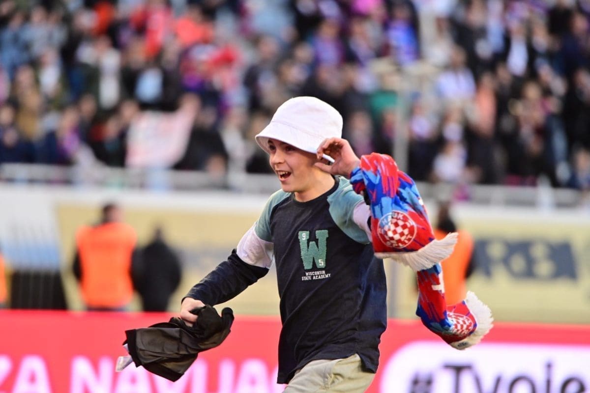 Jedna je stvar izazvala posebno oduševljenje, a to je trenutak kada se dječak sa Sjeverne tribine uspio probiti do terena, gdje je za uspomenu dobio, ako smo dobro vidjeli, dres kao suvenir.
