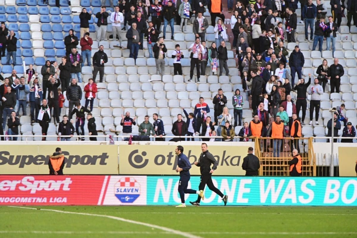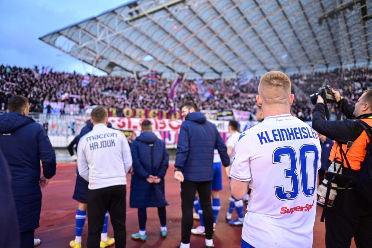 Nakon pobjede Hajduka nad Slaven Belupom, Bijeli su otišli pozdraviti navijače, a oni su ih dočekali skandiranjem i pjesmom.