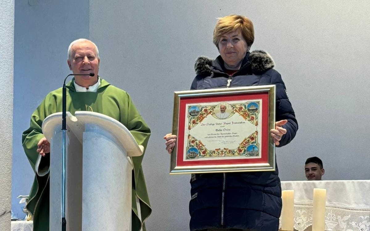 U nedjelju 21. siječnja, na kraju misnog slavlja treće nedjelje kroz crkvenu godinu, fra Mladen Marić, župni vikar u crkvi svetog Franje u Čitluku i Jasenskom uručio je posvetu pape Franje Nadi Grčić kao zahvalu za 25 godina rada i zalaganja u ulozi sakristanke u toj crkvi.