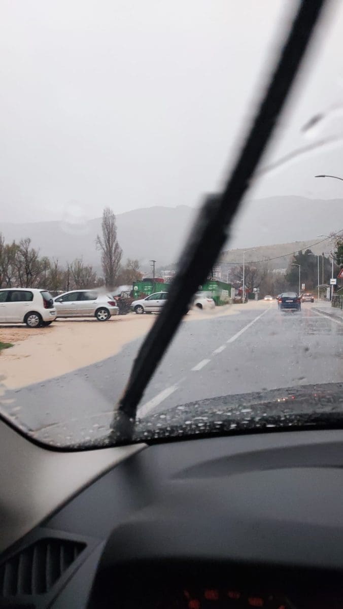 U kratkom vremenu palo je preko 20 oborine po kvadratnom metru, a zbog toga su nastale bujice na ulicama. U Žrnovnici u smjeru Korešnice bujične vode prekrile su cestu, odnosno dijelove mosta 'Rakite'. Iz obližnjeg podstranskog reciklažnog dvorišta slijevao se goleme količine kiše na cestu.