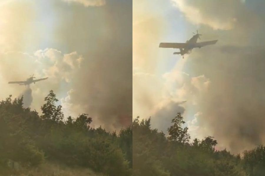 Na terenu su vatrogasne snage iz DVD-ova Solin, Klis, Dugopolje, Zagora, Muć, JVP Sinj te jedan kanader.