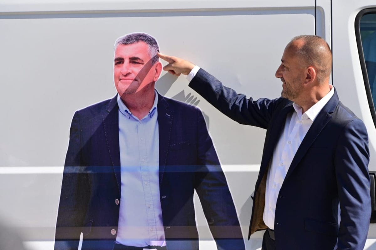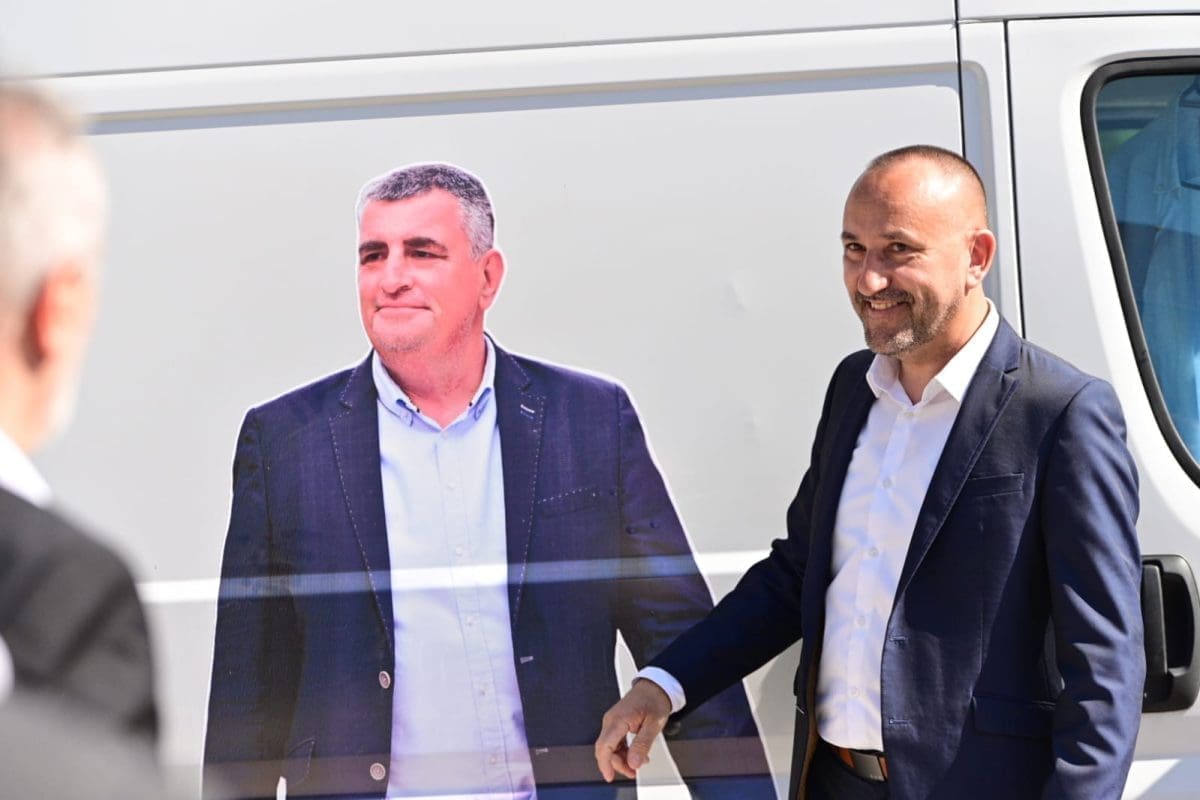 Osim toga, HDZ-ovce je na ulazu na parking hotela Alkar dočekao kombi oblijepljen likom Mira Bulja te njegovim sloganom.
