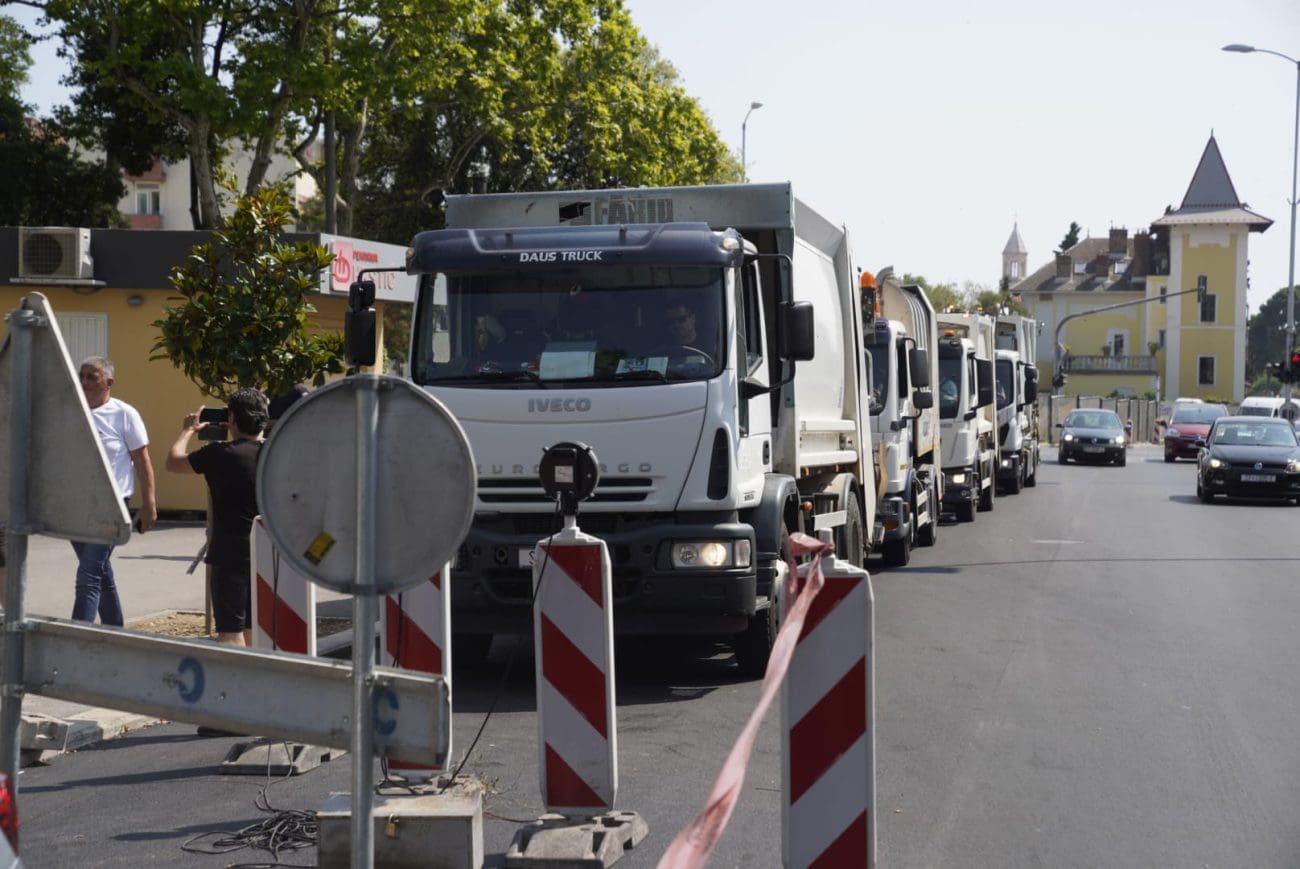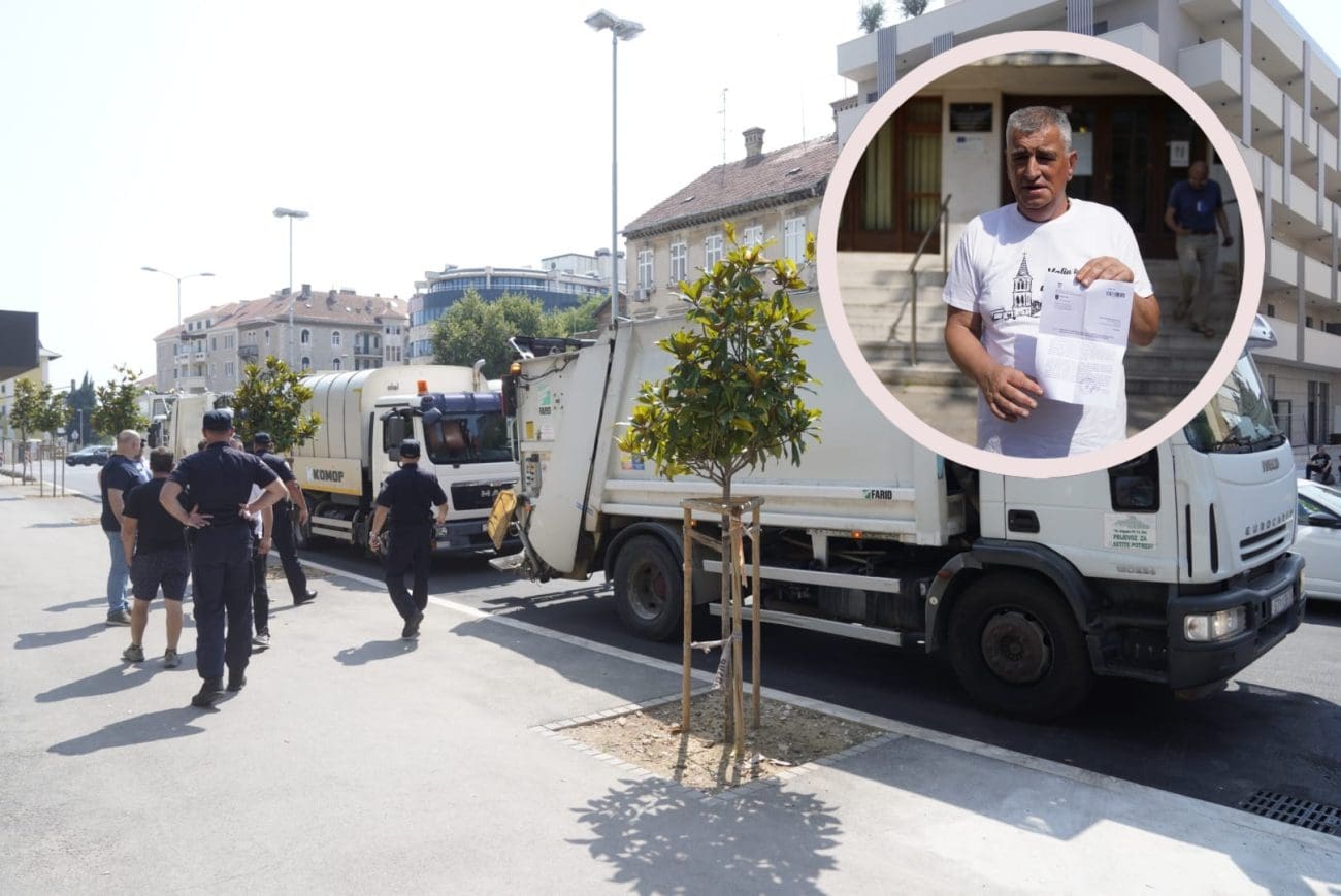 Gradonačelnik Sinja Miro Bulj stigao je s četiri kamiona puna otpada sa sinjskog odlagališta Mojanka pred zgradu Splitsko-dalmatinske županije.