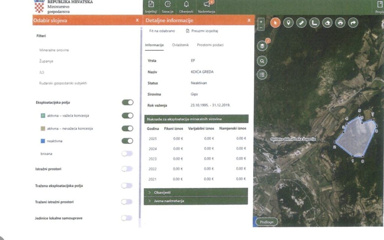 Polje „Kojića greda“ izbrisano je iz Prostornog plana Grada Sinja još 2023. godine, dok je njegov rok važenja istekao 31. prosinca 2019. godine. Unatoč tome, Ministarstvo gospodarstva odbilo je zahtjev Grada Sinja za sanaciju polja bez eksploatacije, pozivajući se na postojanje ovlaštenika, tvrtke Draga-sadra d.o.o., te tvrdeći da Republika Hrvatska nije upisana kao ovlaštenik u Registar eksploatacijskih polja.