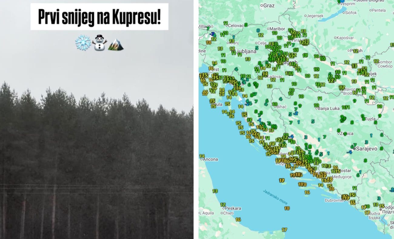 Najniža temperatura zraka u Hrvatskoj izmjerena je na Crometeo mjernoj postaji na Sinjalu na Dinari, čak -4°C.