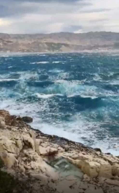 Bura na Dupcima ima udare preko 130 km/h, a na udaru ove bure su stanovnici Pučišća na otoku Braču odakle nam stiže poslijepodnevna snimka: