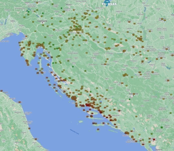 U Dalmaciji je zasad oborina bilo samo na kninskom području gdje je i osjetno osvježilo. Tamo je temperatura pala na 18 stupnjeva.