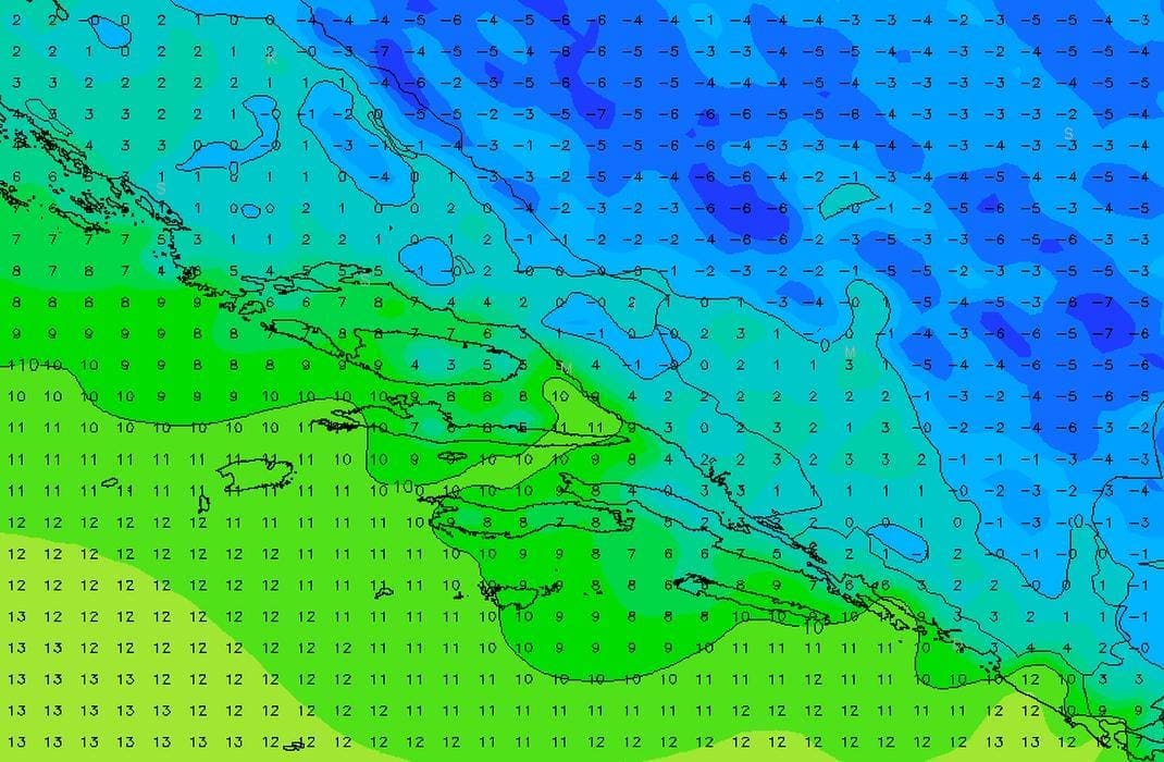 Temperature su pale u odnosu na prethodne dane pa su u najtoplijem dijelu dana bile od 12 do 17°C. Večeras je najhladnije u najvišem gorju, na Svetom Juri na Biokovu i Velikoj Duvjakuši na Dinari s -3°C.