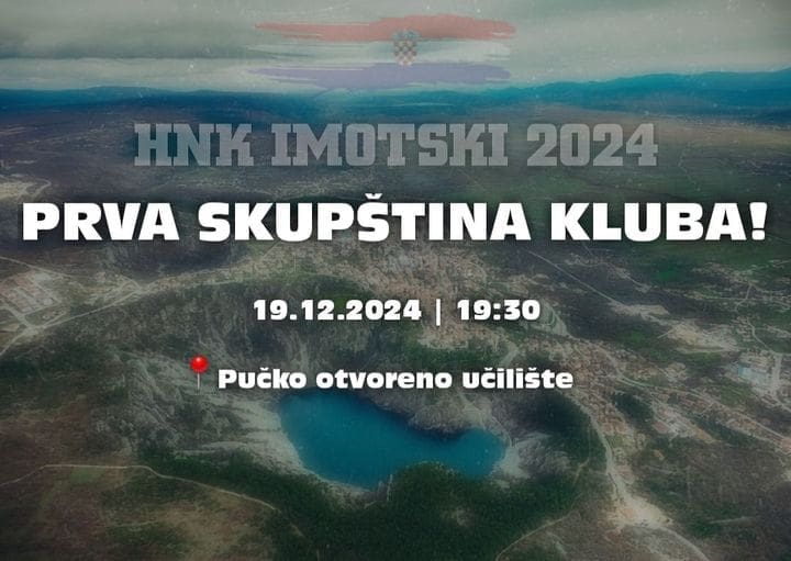 Pred kraj godine, točnije 19. prosinca održat će se prva skupština HNK Imotski 2024 u Pučkom otvorenom učilištu u Imotskomu u 19:30. Objavljeno je to na Facebooku na "službenim stranicama" novog nogometnog kluba u Imotskoj krajini. Osnivači pozivaju i na Božićno - novogodišnji domjenak 27.12.2024. u Ričicama.