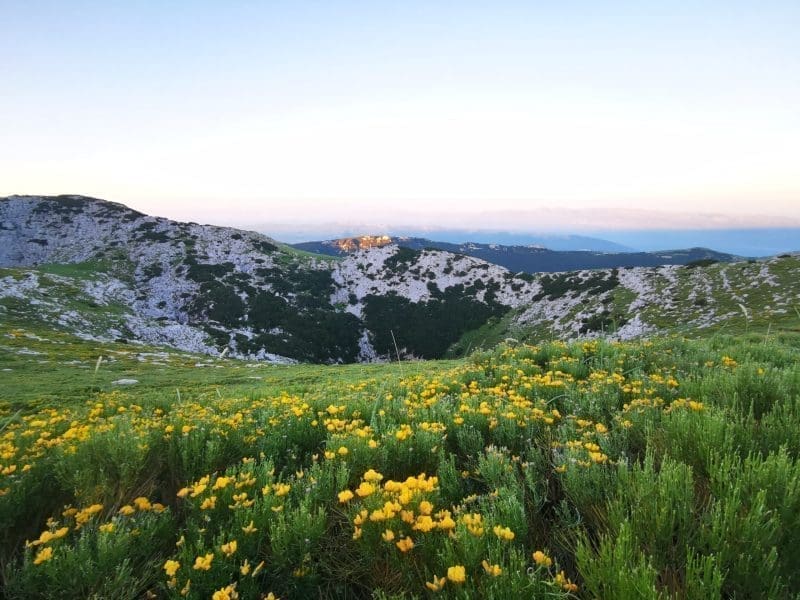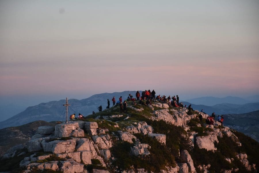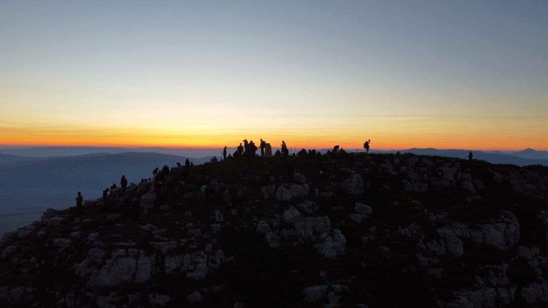 I onda, nakon što su se povukle biserne zvijezde koje su nam svijetlile put cijelu noć, nebo je svojim raskošnim bojama počastila središnja zvijezda našeg Sunčevog sustava i probudila još jedan dan dočekan na najvišem vrhu Dinare. Troglav (1913 m) je najviši vrhunac u planinskom vijencu Dinare, a nazvan je po troglavom bogu koji je poznat iz rane praeuropske mitologije Kelta, Slavena i Hurita, Triglavu. Prostrani greben primio je u svoje veliko naručje sve sudionike i pružio nam odmor i okrjepu za nastavak. Hipnotizirani vatrenim tonovima žute, narančaste i crvene što su se razlijevale po horizontu dočekali smo izlazak vatrene kugle, glavnog krivca za obojenu melodiju što je nebeskim platnom pjeva.