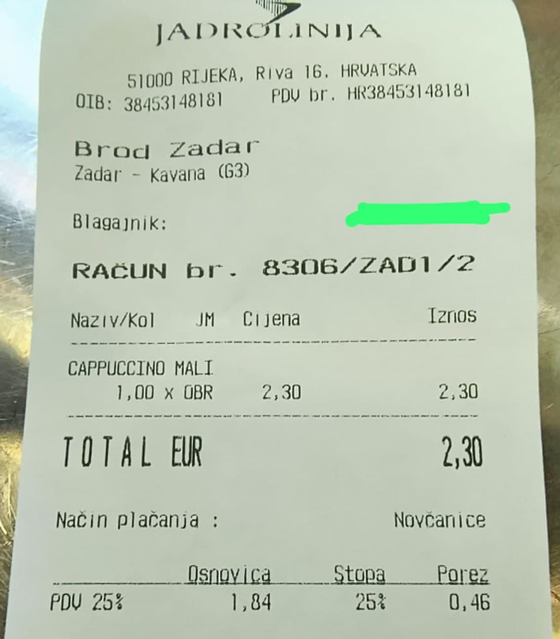 Račun iz Jadrolinije, na kojem je "Cappuccino mali" naplaćen 2,30 eura, teško se može nazvati pretjerivanjem. Dapače, kada se ta cijena usporedi sa skupljim lokacijama u Splitu, posebno na Zapadnoj obali i Žnjanu, ispada da je brodska kava još i razumna.