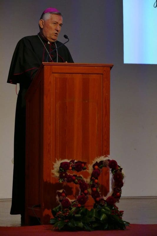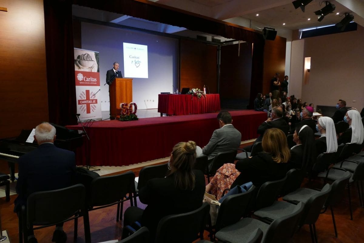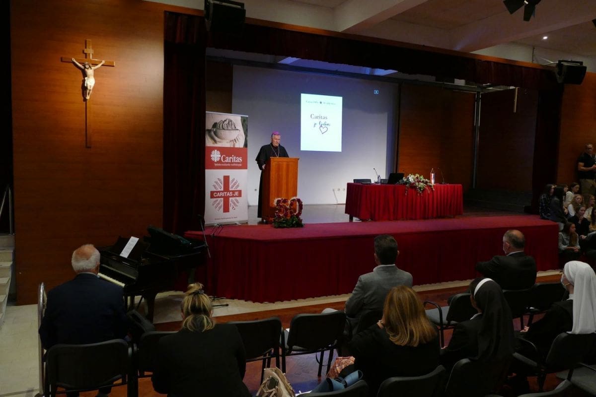 Istaknuo je da je vjera bez djela mrtva, pa tako i „naviještanje Krista bez konkretnih djela ostaje mrtvo. Caritas znači hraniti gladne kroz naše blagovalište, odijevati siromahe, obilaziti bolesne, štiti slabe i ranjive, hrabriti mlade i izgubljene. Kroz ovih 50 godina Caritas se nije evolucijski razvijao, već se razvijao osluškujući i osjećajući čovjeka u potrebi i zajednicu u cjelini. Stoga je naše djelovanje uvijek bilo usmjereno na konkretnog čovjeka i njegove potrebe."