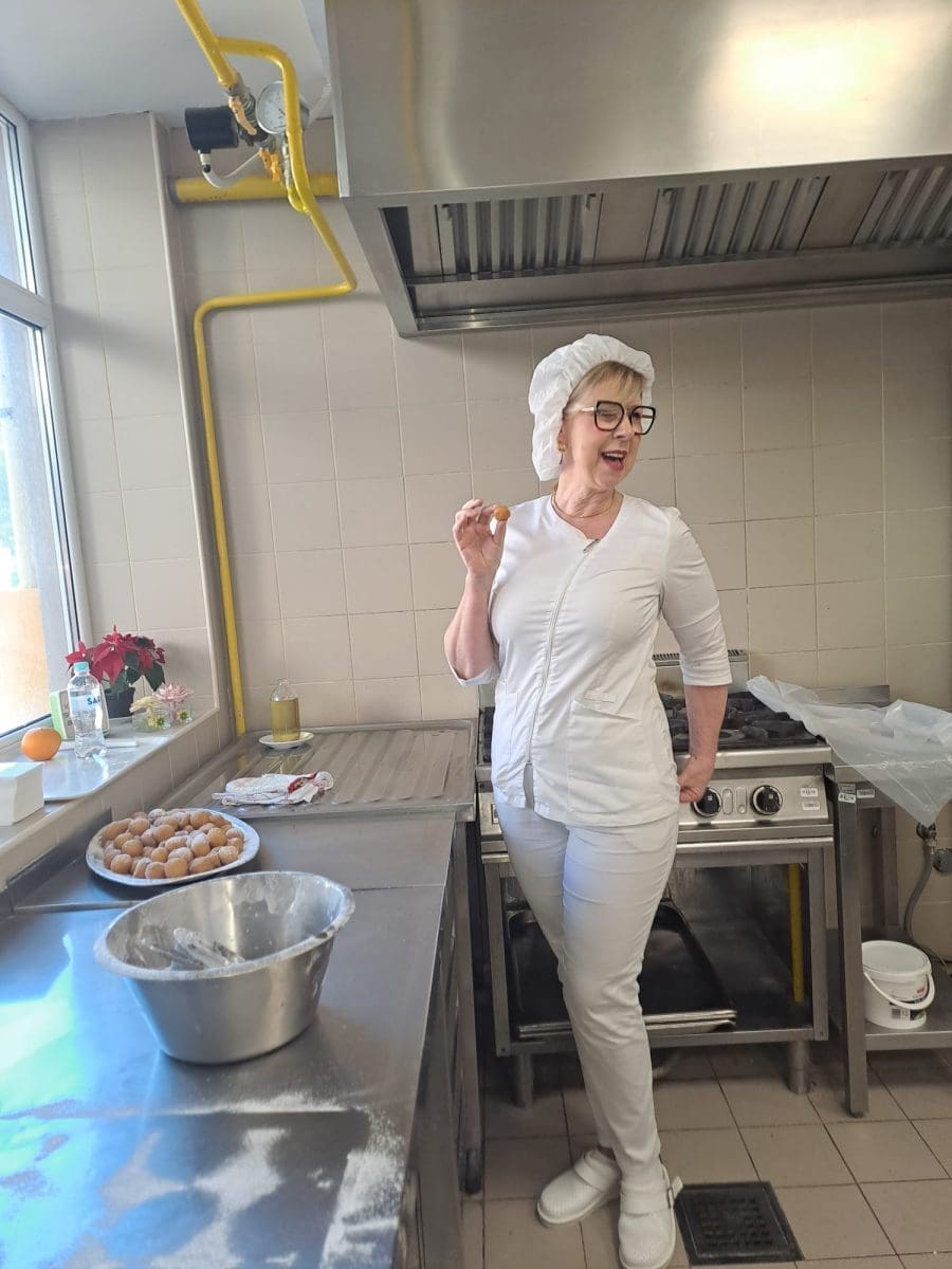 Ona i Anka su nekoliko sati prije našeg dolaska radile fritule za gradonačelnika Ivicu Puljka koji je bolnici došao uručiti donaciju građana. Za njega i dvadesetak uzvanika su pripremile tri kilograma fritula.