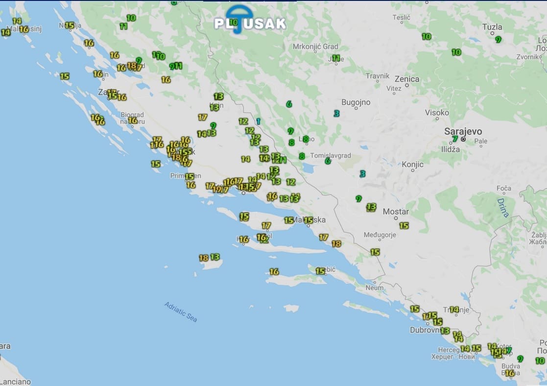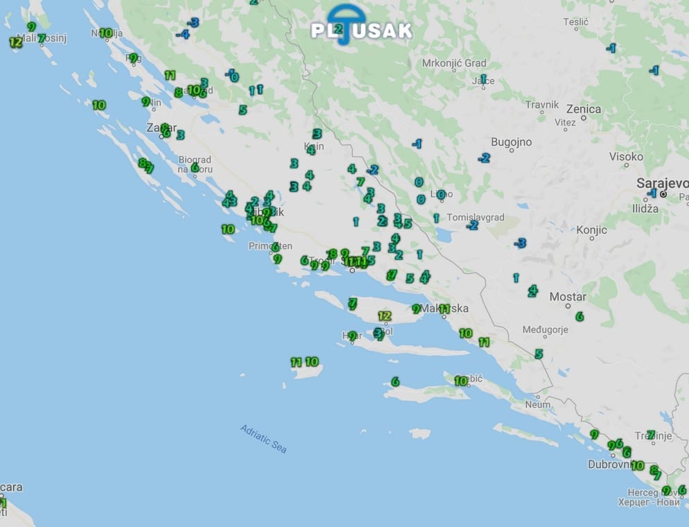 Iako su diljem Dalmacije i danas zabilježene temperature zraka znatno više od normale za dio godine, u velikom dijelu Zagore minimalne temperature zraka bile su blizu 0°C. S druge strane, popodne je ponegdje uz obalu i na otocima izmjereno visokih 17°C za dio godine.