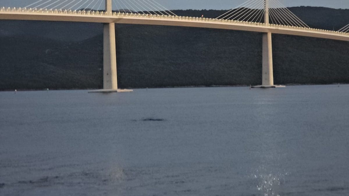 Zaigrani dupini su plivali u blizini Pelješkog mosta.
