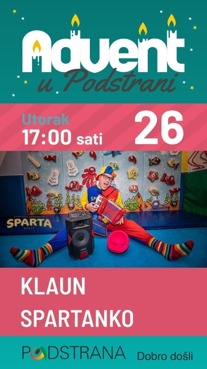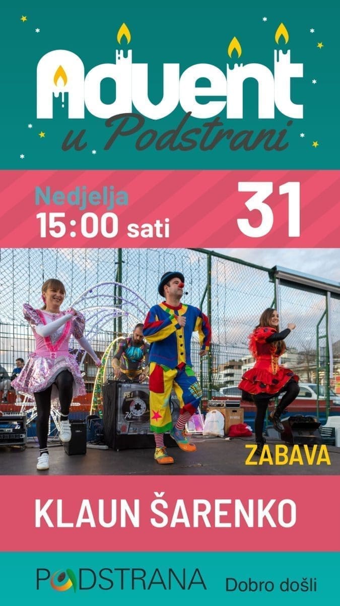 U nedjelju 31. prosinca u 15h dovedite svoju djecu na dječji doček Nove godine u koju će ih uvesti Klaun Šarenko. A vi se dobro opustite i u Novu godinu uđite u najboljem mogućem raspoloženju. Neka je sa srećom svima!