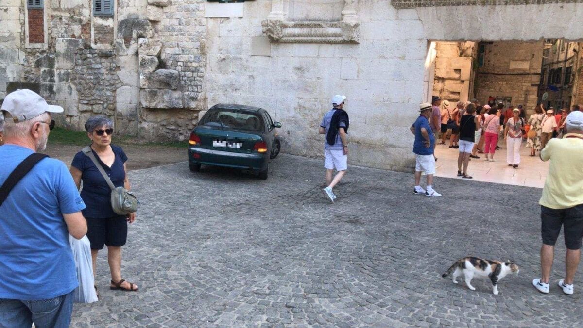 Hyundai accent ponovno je tijekom četvrtka osvanuo parkiran tik do Zlatnih vrata. Njegov vlasnik parkirao ga je upravo tako da bude pod "nadzorom" velikog Grgura u slučaju da ga, ne daj Bože, netko odluči ukrasti ili provaliti u njega i iščupati radio, ako ga ima.