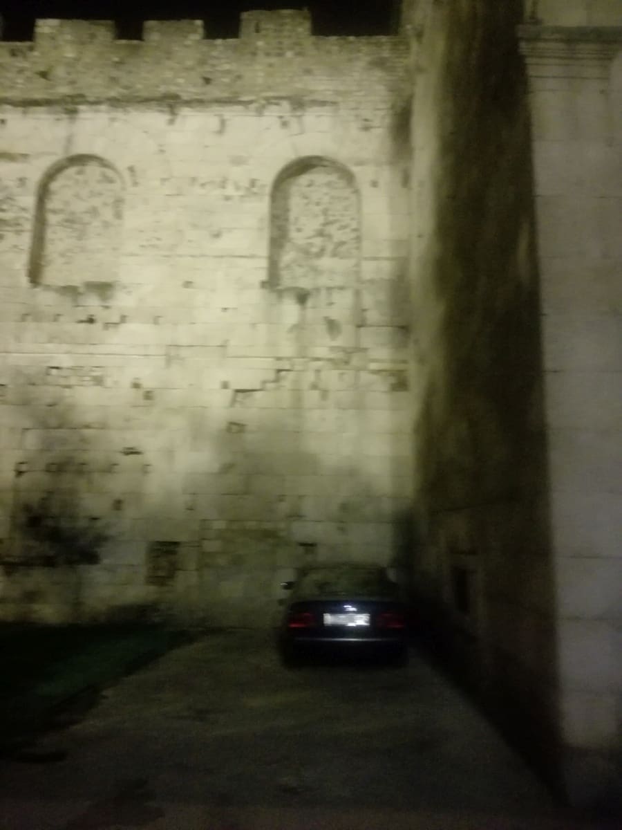 Na redakcijski e-mail (info@dalmacijadanas.hr) stigao nam je mail čitatelja iz Splita koji je u ponedjeljak navečer oko 23 snimio osobni automobil splitskih registarski oznaka parkiran uz sjeverozapadnu kulu Dioklecijanove palače.
