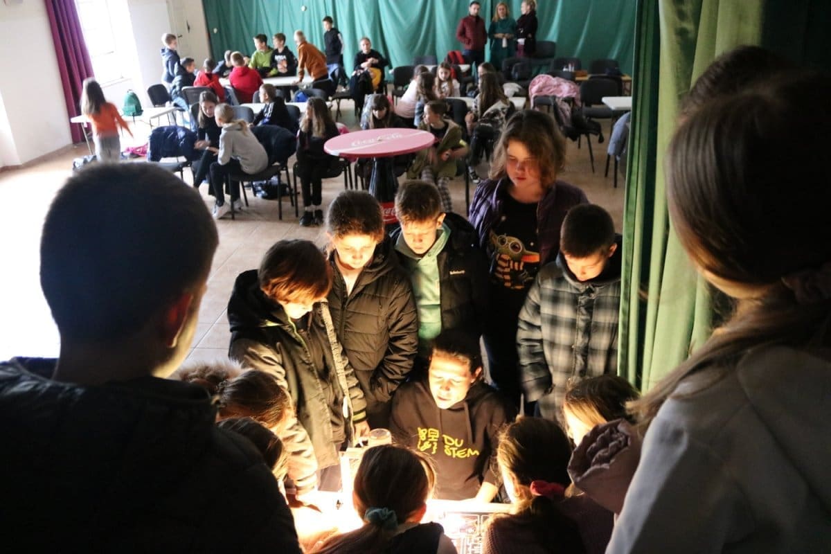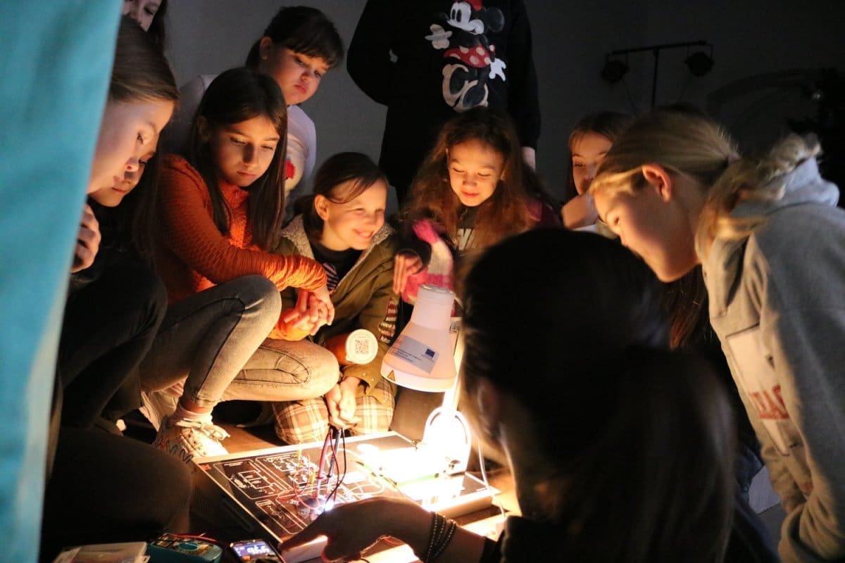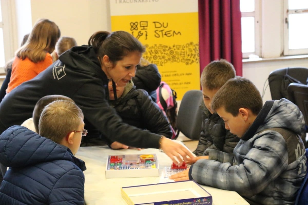 Nakon toga polaznici su primijenili svoje znanje i kroz radionicu Šarenog strujnog kruga gdje su spajali osnovne strujne krugove sa specijaliziranim setovima, proučavali kako rade led diode i ventilatori ovisno o vrsti spoja, te su isprobali kako radi senzor ravnoteže.