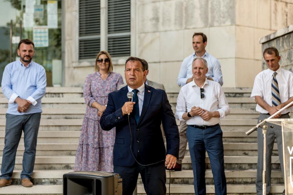 Domaćin skupa, makarski gradonačelnik Jure Brkan se obratio prvi, te je u govoru istaknuo sposobnost Plenkovićeve Vlade da u vremenu korona krize sačuva radna mjesta i osigura za preko 500.000 građana prihode za trajanja “lock downa”.