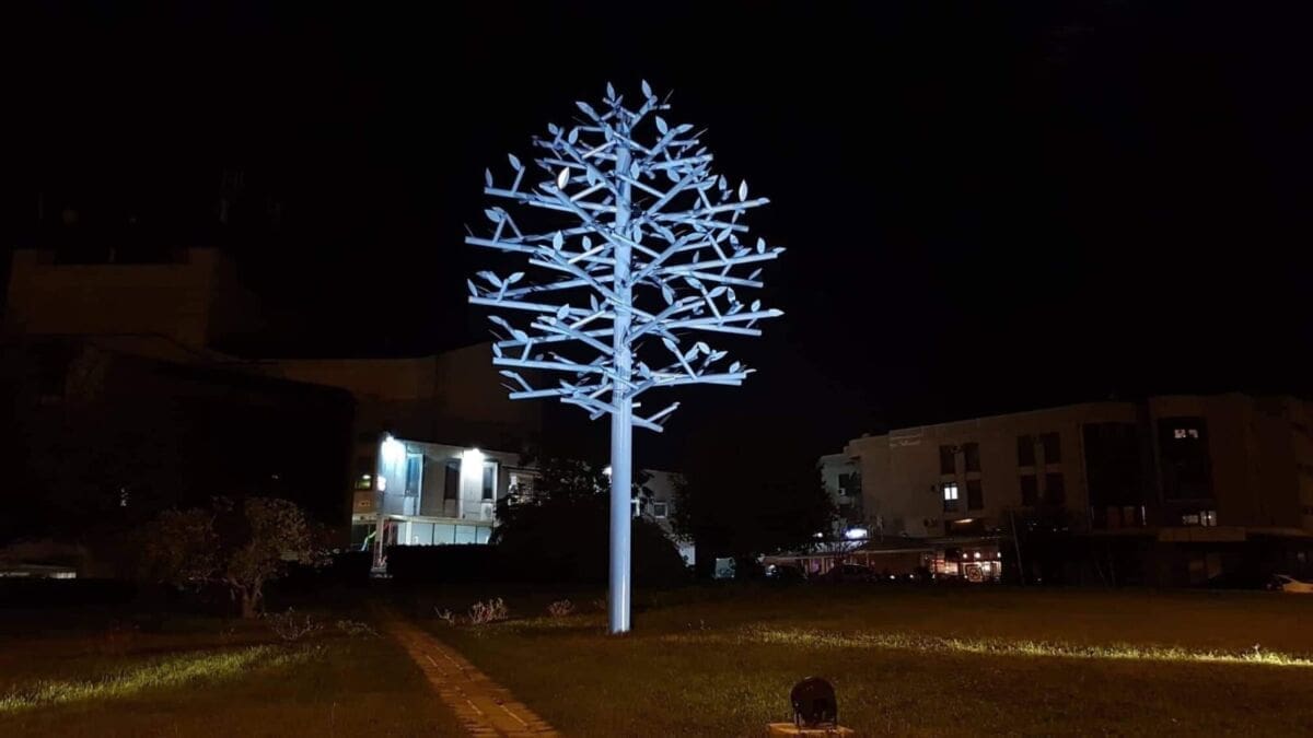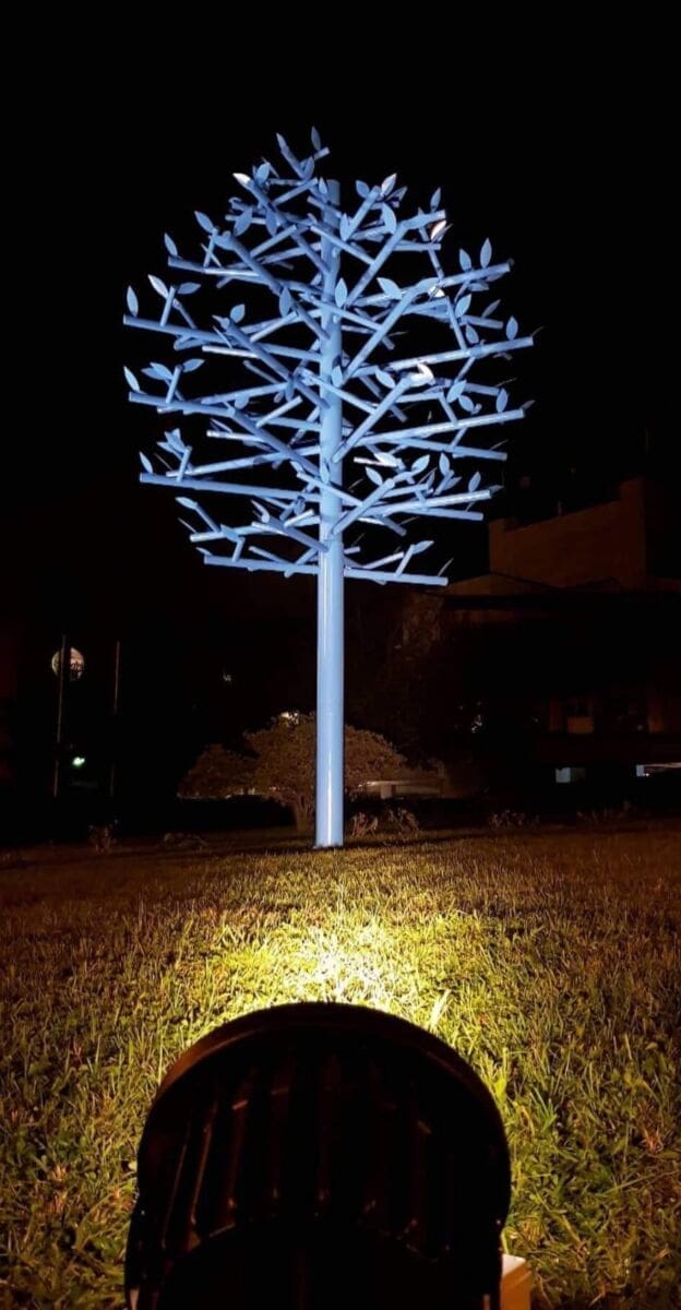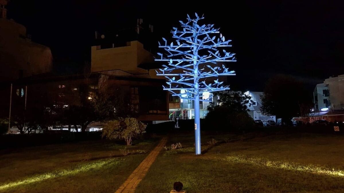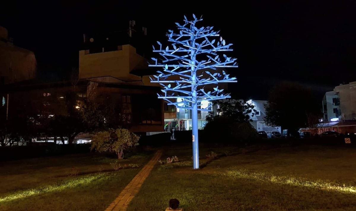 Nakon što je postavljena rasvjeta, "Plavo stablo" Vaska Lipovca večeras je konačno zasjalo.