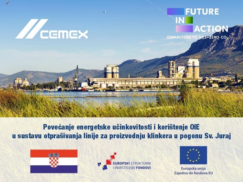 CEMEX Hrvatska je potpisao ugovor o dodjeli bespovratnih sredstava za projekt “Povećanje energetske učinkovitosti i korištenje OIE u sustavu otprašivanja linije za proizvodnju klinkera u pogonu Sv. Juraj“. Projekt je vrijedan 19.721.343,44 kune od čega je 9.853.100,70 kuna, odnosno 50 posto financirano sredstvima Europske unije iz Europskog fonda za regionalni razvoj.