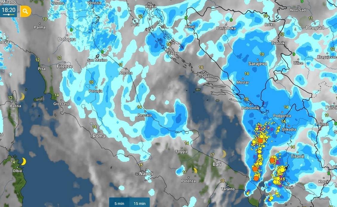 Preko Jadrana se u nedjelju navečer premještao ciklonalni centar što je bilo praćeno oblačnim vremenom uz kišu, a ponegdje i pljuskove s grmljavinom. Prema podacima mreže postaja Pljusak.com, do 19 sati najviše kiše palo je u okolici Vodica. U Zatonu su zadnja 24 sata pale čak 104 litre kiše po kvadratnom metru. Slijede Vodice 91, Živogošće 78, Staševica 67, Drniš 62, Kaštel Štafilić 52, Gruda 44, Golubić i Kučiće 40 itd.