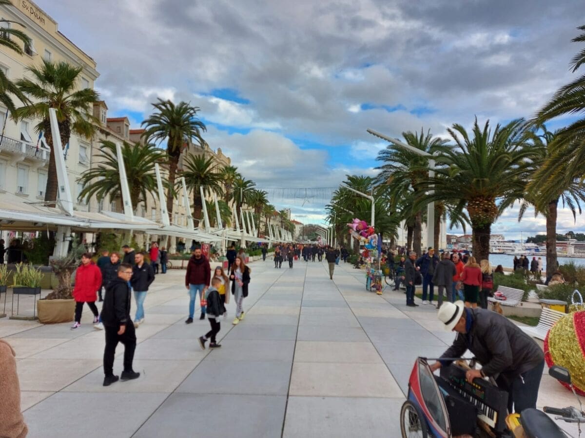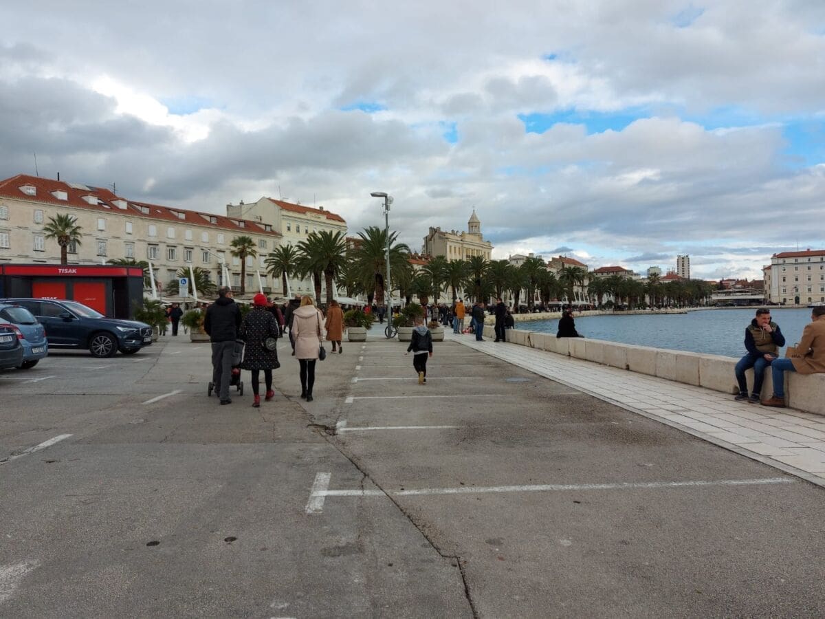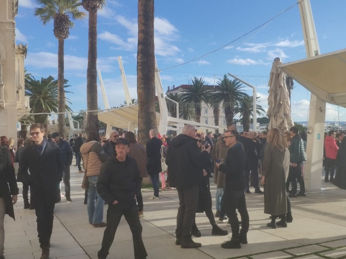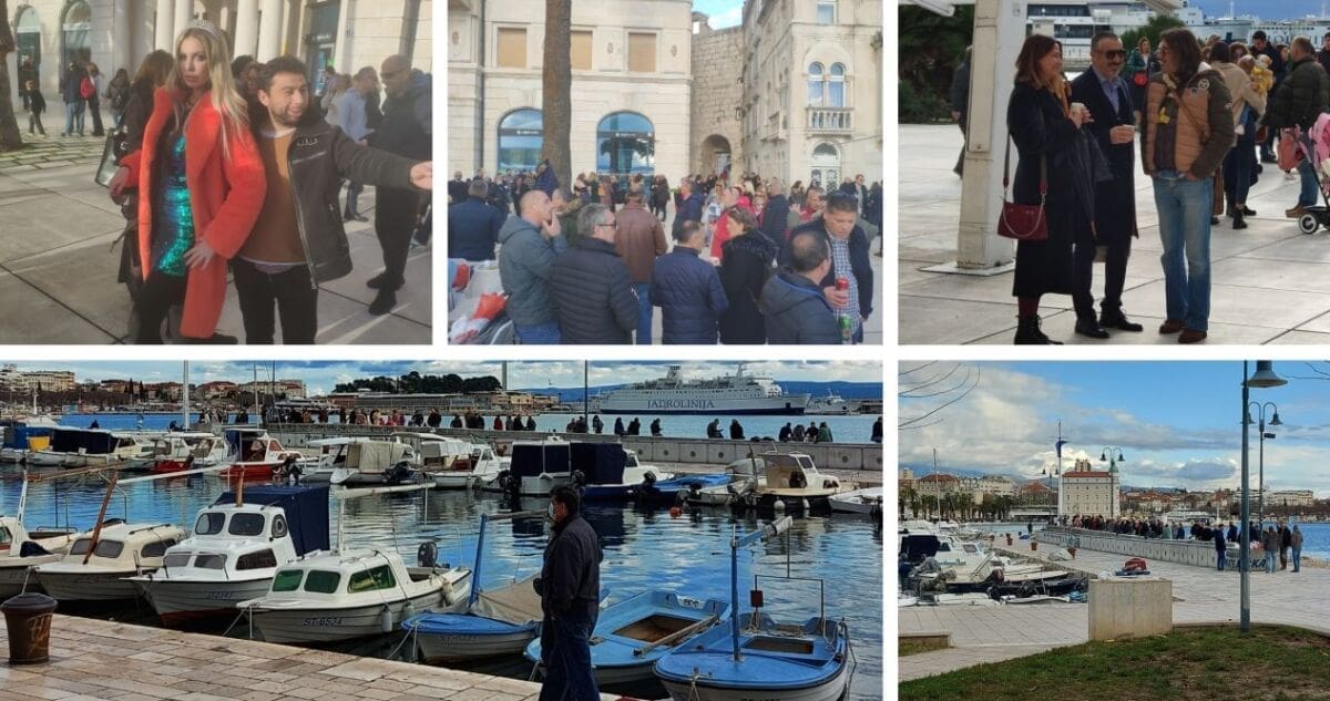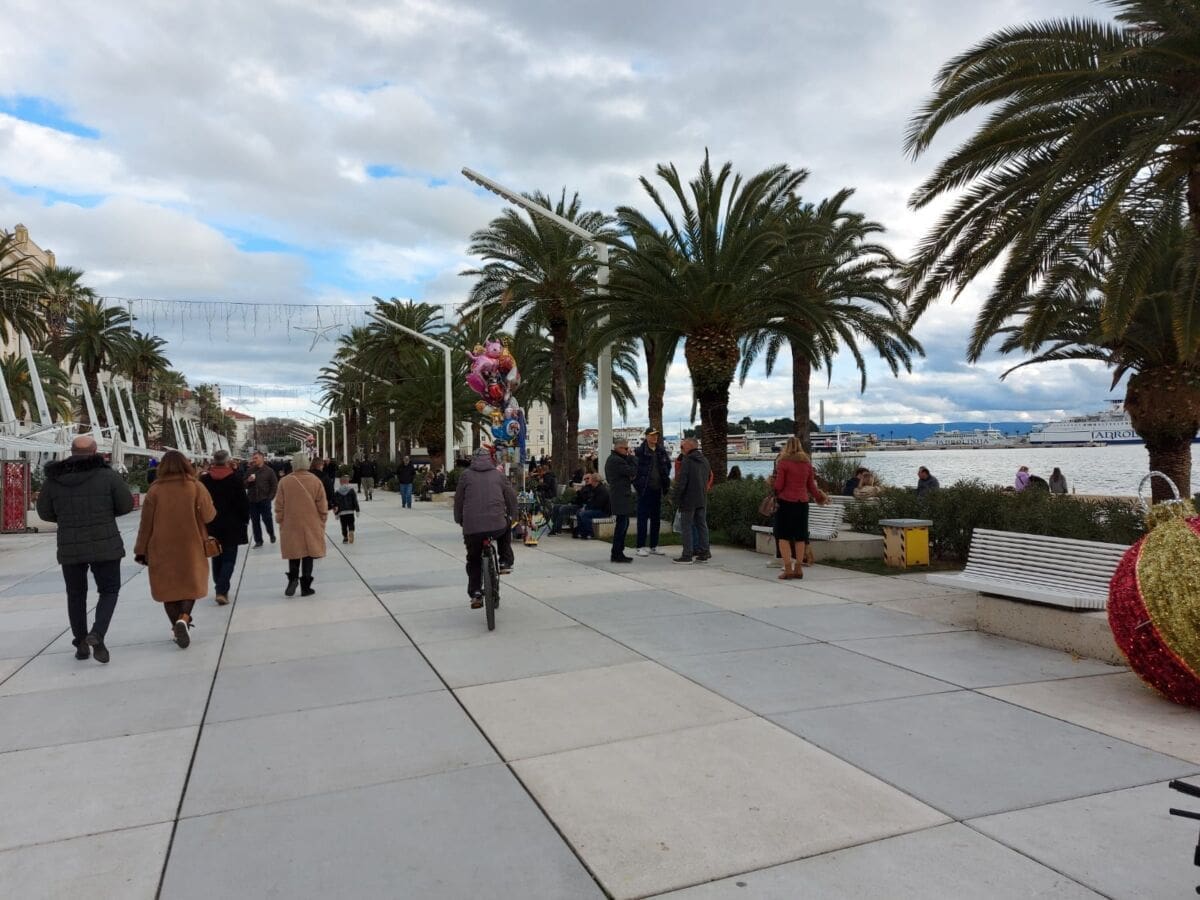 Splitska riva i danas je puna svita. Lijepo vrijeme izmamilo je ljude iz kuća, a i Stara godina je. Prijašnjih godina ovakva slika iz centra grada na Silvestrovo bila je uobičajena.