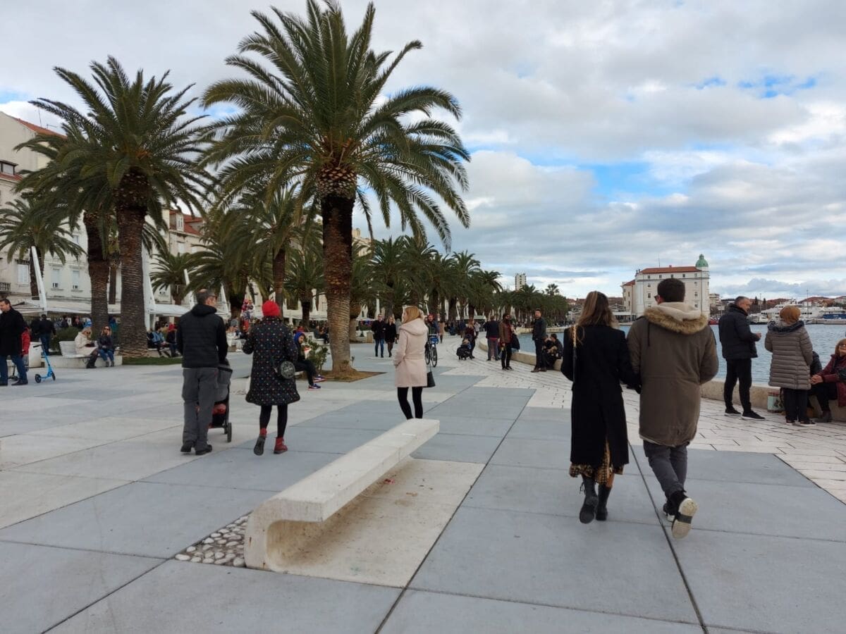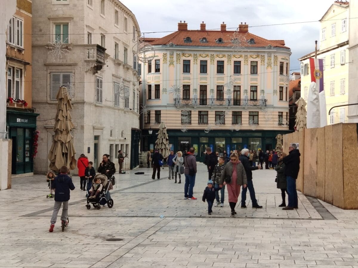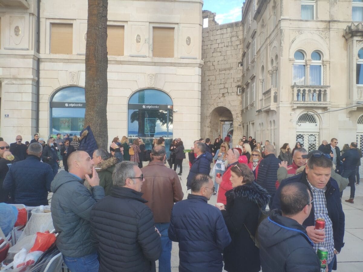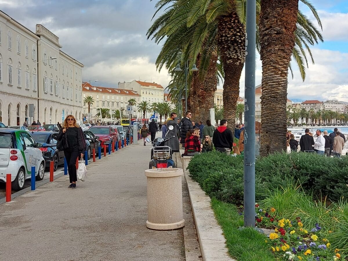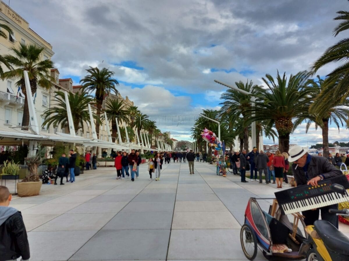 Splitska riva i danas je puna svita. Lijepo vrijeme izmamilo je ljude iz kuća, a i Stara godina je. Prijašnjih godina ovakva slika iz centra grada na Silvestrovo bila je uobičajena.