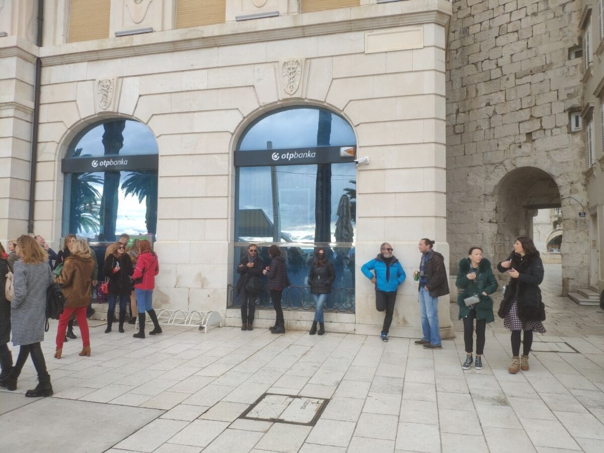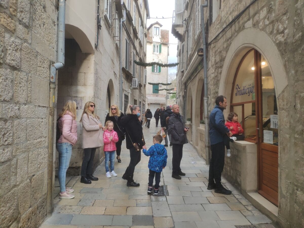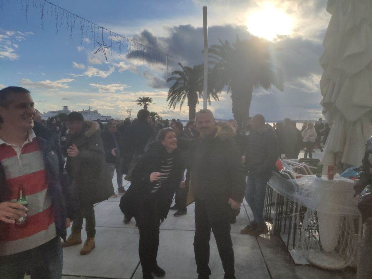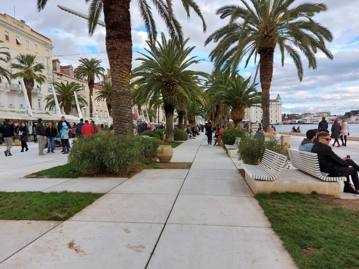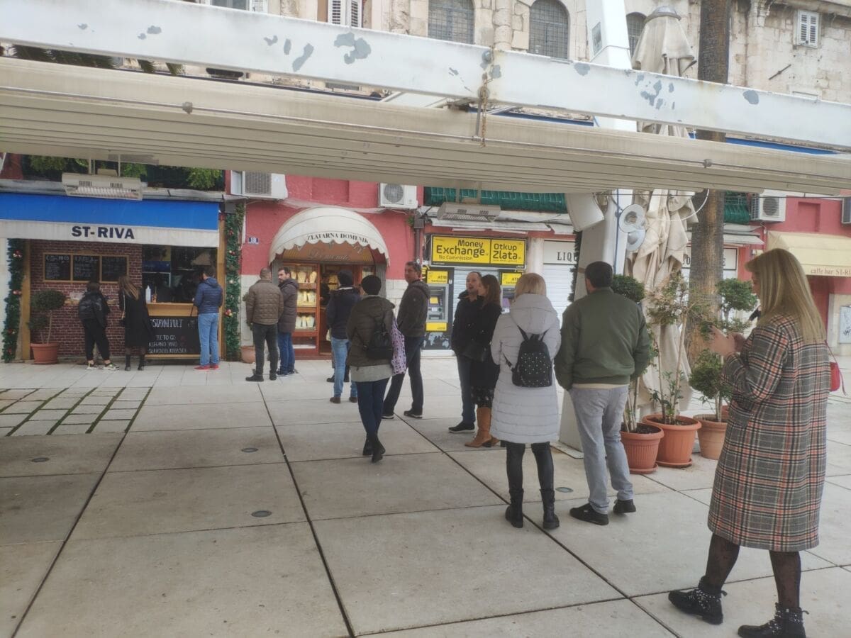 Splitska riva i danas je puna svita. Lijepo vrijeme izmamilo je ljude iz kuća, a i Stara godina je. Prijašnjih godina ovakva slika iz centra grada na Silvestrovo bila je uobičajena.