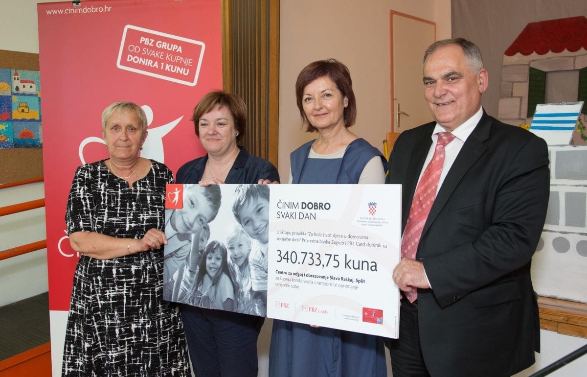 Donacija je dio humanitarnog projekta PBZ Grupe "Činim dobro svaki dan" i American Express kartice sa srcem putem kojih Grupa pomaže dva značajna nacionalna projekta za dobrobit djece i mladih: "Za bolji život djece u domovima socijalne skrbi" Ministarstva za demografiju, obitelj, mlade i socijalnu politiku te "Praćenje djece s neurorizicima" Ministarstva zdravstva, izdvajajući za svaku transakciju napravljenu American Express karticom sa srcem po jednu kunu, bez dodatnog troška za korisnike kartice. Prikupljena sredstva PBZ Grupa donira ovim projektima u omjeru 50:50. Za projekt "Činim dobro svaki dan" Grupa je do sada prikupila gotovo 13 milijuna kuna.COO Slava Raškaj iz Splita uključen je u projekt "Za bolji život djece u domovima socijalne skrbi", a donacija tom centru je 34. donacija koju je PBZ Grupa realizirala u sklopu projekta "Činim dobro svaki dan" i American Express kartice sa srcem.