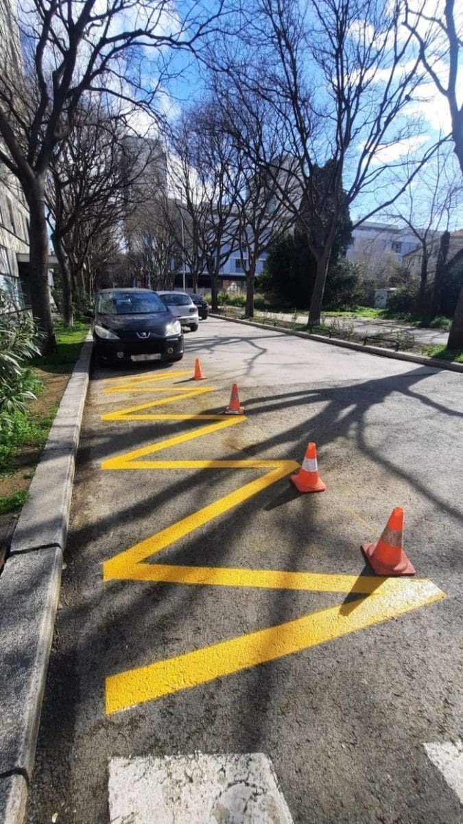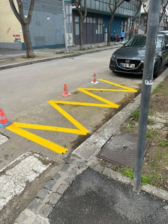 Teslina, Jobova, Rendićeva... Cestar upravo iscrtava horizontalne signalizacije ispred i iza pješačkih prijelaza. Potez je to Grada na kojeg su oštro reagirali neki Spinućani zaboravljajući kako se radi o zakonskim odredbama o sigurnosti na cestama, pet metara slobodnog, vidljivog prostora od pješačkog prijelaza. Sad će biti i vidljiva zabrana parkiranja.