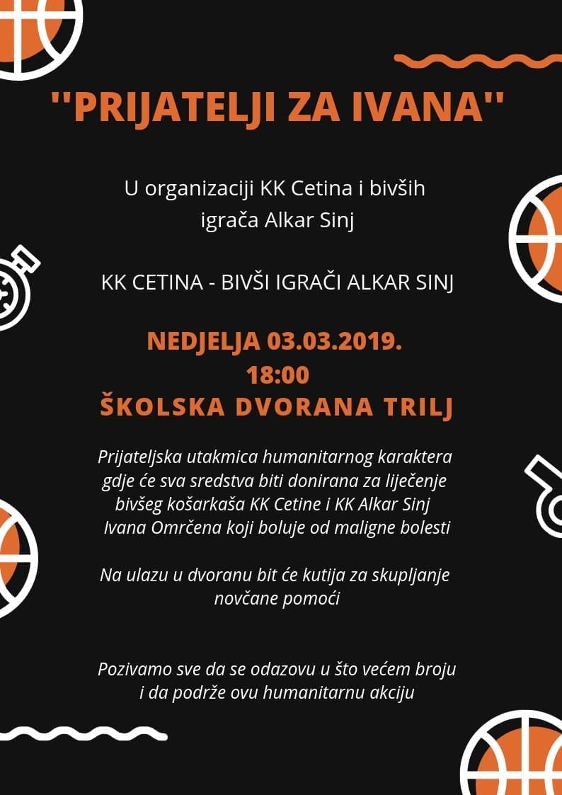 Naime, KK Cetina i bivši igrači Sinjskog Alkara odlučili su održati utakmicu za svog bivšeg suigrača i prijatelja Ivana Omrčena koji, nažalost, boluje od maligne bolesti.