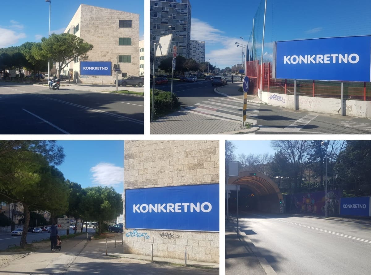 Na jumbo plakatima diljem Splita tijekom četvrtka osvanuli su brojni identični plakati. Na plavoj pozadini nalazi se samo jedna riječ - konkretno. Ne postoji nikakav logo ili bilo što što objašnjava na što ciljaju ovu misteriozni plakati.