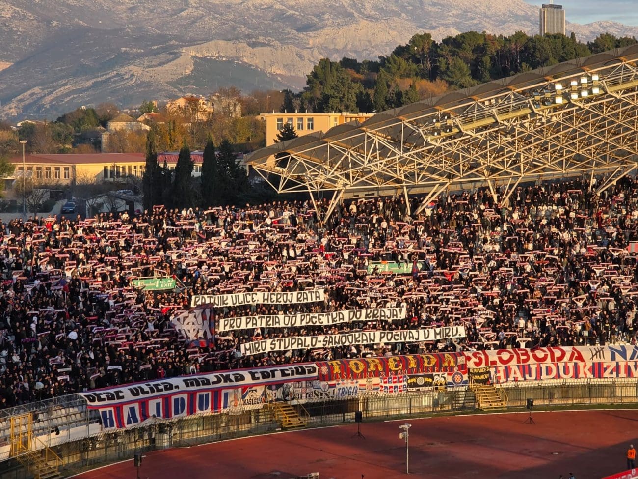 U 32. je minuti Torcida posvetila novi transparent svojim preminulim pripadnicima. Na sjeveru su podignuli poruku "20 GODINA TUGE, TRIBINA NE ZABORAVLJA! / PERO I BAGA POČIVAJTE U MIRU."