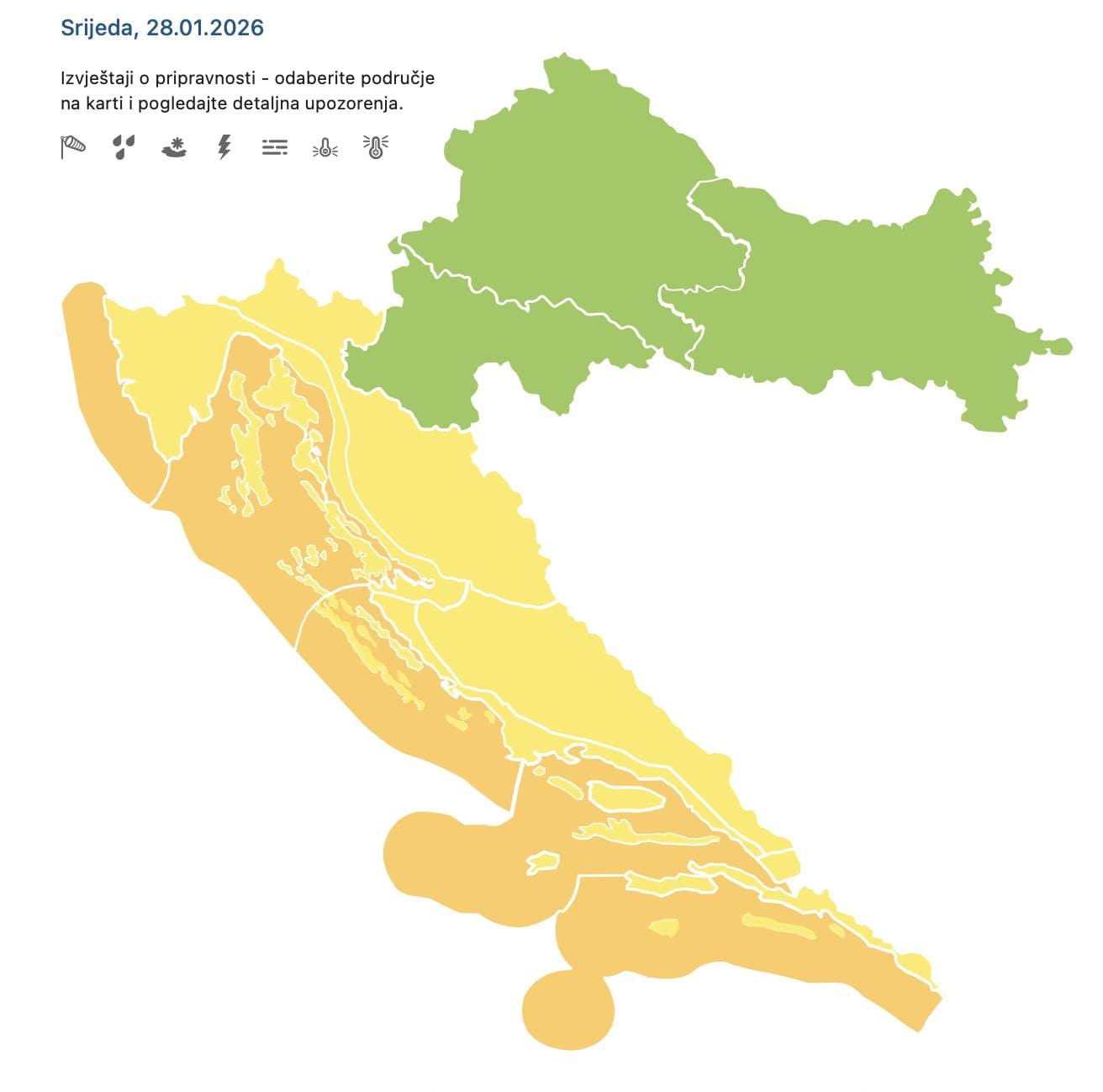 DHMZ je, unutar sustava MeteoAlarm za Jadran, točnije za more, izdao narančasto upozorenje i to zbog juga koje bi prema upozorenju imalo udare do 110 km/h.