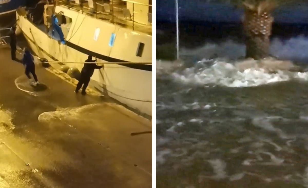 Problema s naglo ojačanim južnim vjetrovima bilježe se i na otoku Korčuli. Tako su građani u nedjelju navečer spašavali jednu koću u Veloj Luci koja se nabijala na obalu uslijed valovitog mora i plime.