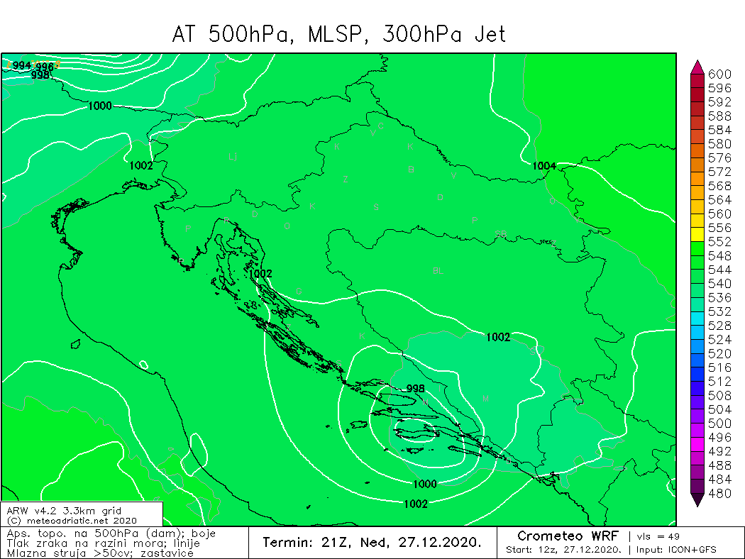 Niski tlak zraka, koji je u centru ove "jadranske" ciklone sredinom noći pao ispod 1000 hektopaskala, izazvao je ciklonalnu plimu.