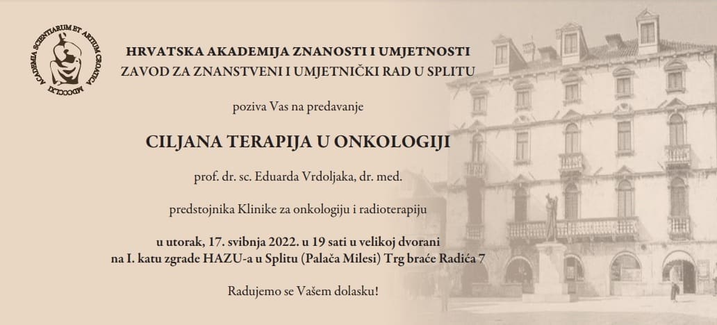 Pitanje je krucijalno. Možemo li mi unaprijediti rezultate onkološkog liječenja i možemo li spasiti mnoge od tih ljudi, bilo na hrvatskoj bilo na svjetskoj razini budući da na globalnoj razini govorimo o više od 20 milijuna oboljelih i 10 milijuna umrlih osoba? Druga stvar koja je zanimljiva i koja dolazi je, ja bih se usudio reći, onkološka revolucija i to kroz napretke u molekulskoj biologiji i onkološkoj znanosti općenito, uz dekodiranje ljudskog genoma, korištenje artificijalne i strojne inteligencije, gdje koristivši sve te metode, dolazimo do nevjerojatnog razvoja onkologije. Zbog svega toga, akademik me zamolio da održim predavanje pod naslovom Ciljana terapija u onkologiji, kako bismo uz tu poruku i prijenos znanja pružili nadu i vjeru ljudima u bolju onkološku budućnost, jer ponavljam, rak više nije takav bauk i zlo kao što je bilo nekoć."