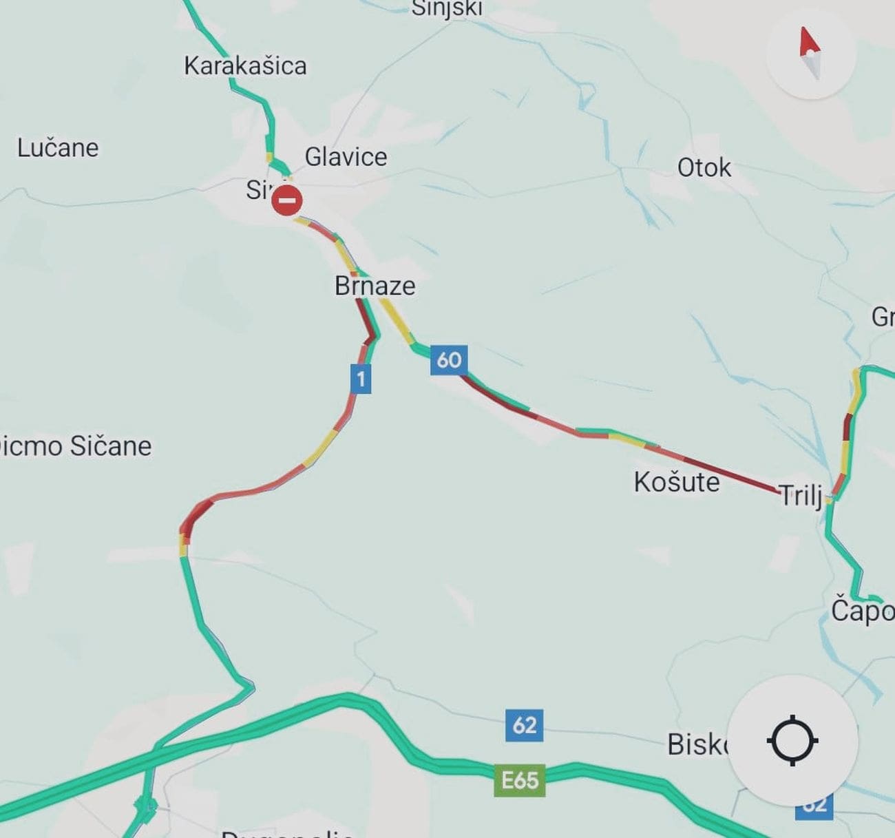 "U ovom trenutku još uvijek su veliki zastoji na izlazima iz Sinja. Uz veliki broj vozila koji napušta područje Sinja, jedna od razloga za ovakvo stanje na cestama su i vozila koja ulaze sa sporednih pravaca na glavne pravce.