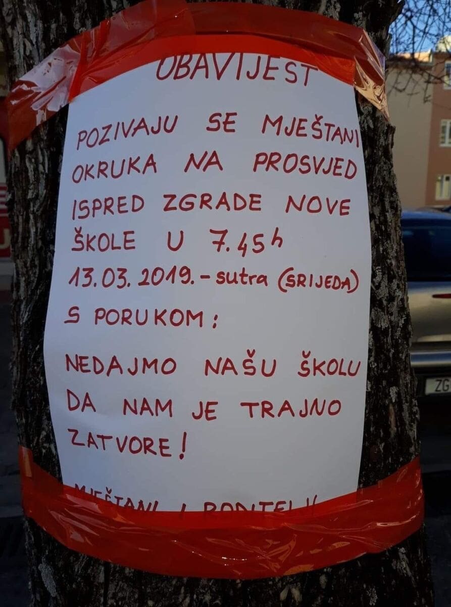 Kako nam javljaju stanovnici Okruga Gornjeg, tijekom srijede bit će organiziran prosvjed ispred osnovne škole. Prosvjed će početi u 7:45. Mještani i roditelji poručuju: "Ne dajmo da nam trajno zatvore našu školu"!.