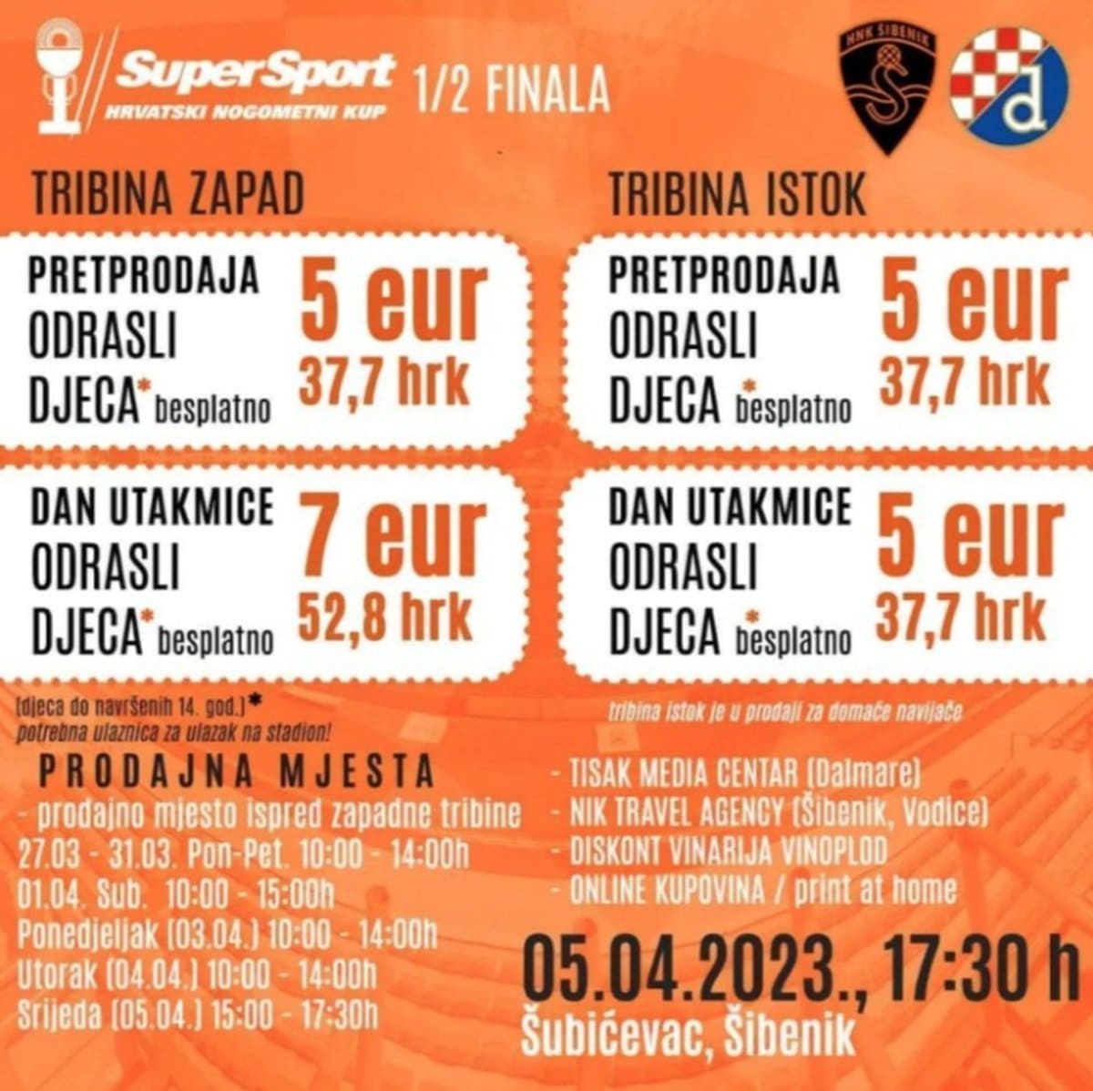 Drugačiji su pak kriteriji kad igra Dinamo: Šibenčani su u prodaju pustili cijeli stadion, nema podjele na domaće i gostujuće, svatko može kupiti kartu za bilo koju tribinu, bez obzira na prebivalište. Karte su za tribinu istok jeftinije 2€ na dan utakmice, nego u pretprodaji, a ulaznice mogu kupiti čak i od kuće.