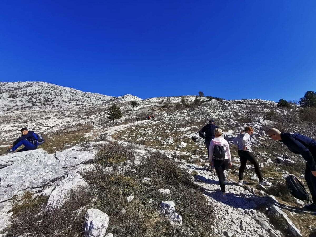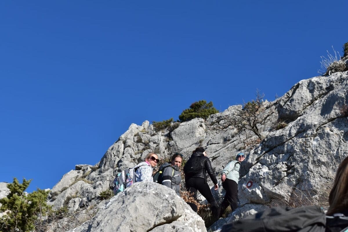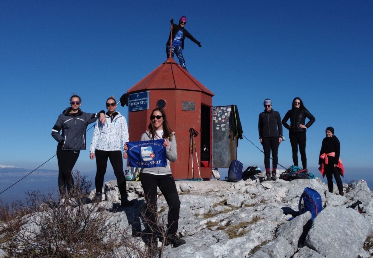 Na putu prema Vickovom stupu susreli smo ne samo planinarska društva, nego i brojne grupe i pojedince. Primjerice, priliku iskoristiti savršene vremenske prilike ove nedjelje nisu propustile članice Ragbi kluba Nada iz Splita, planinarke iz Dugog Rata pa čak ni splitske sutkinje.