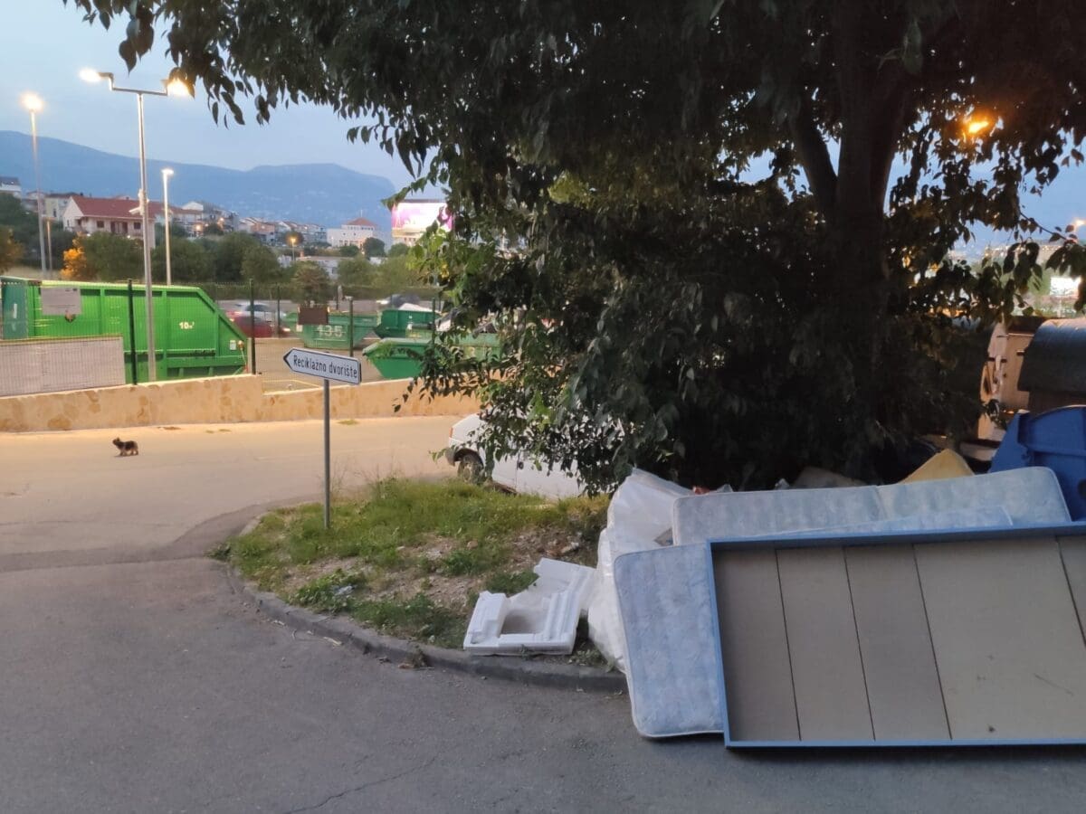 - Danas smo bili u obilasku Reciklažnog dvorišta Pujanke. Na prvoj fotografiji vidmo sami ulaz u reciklažno dvorište, a preostale dvije prikazuju nelegalno odloženi otpad uz kontejnere niti deset metara dalje.
