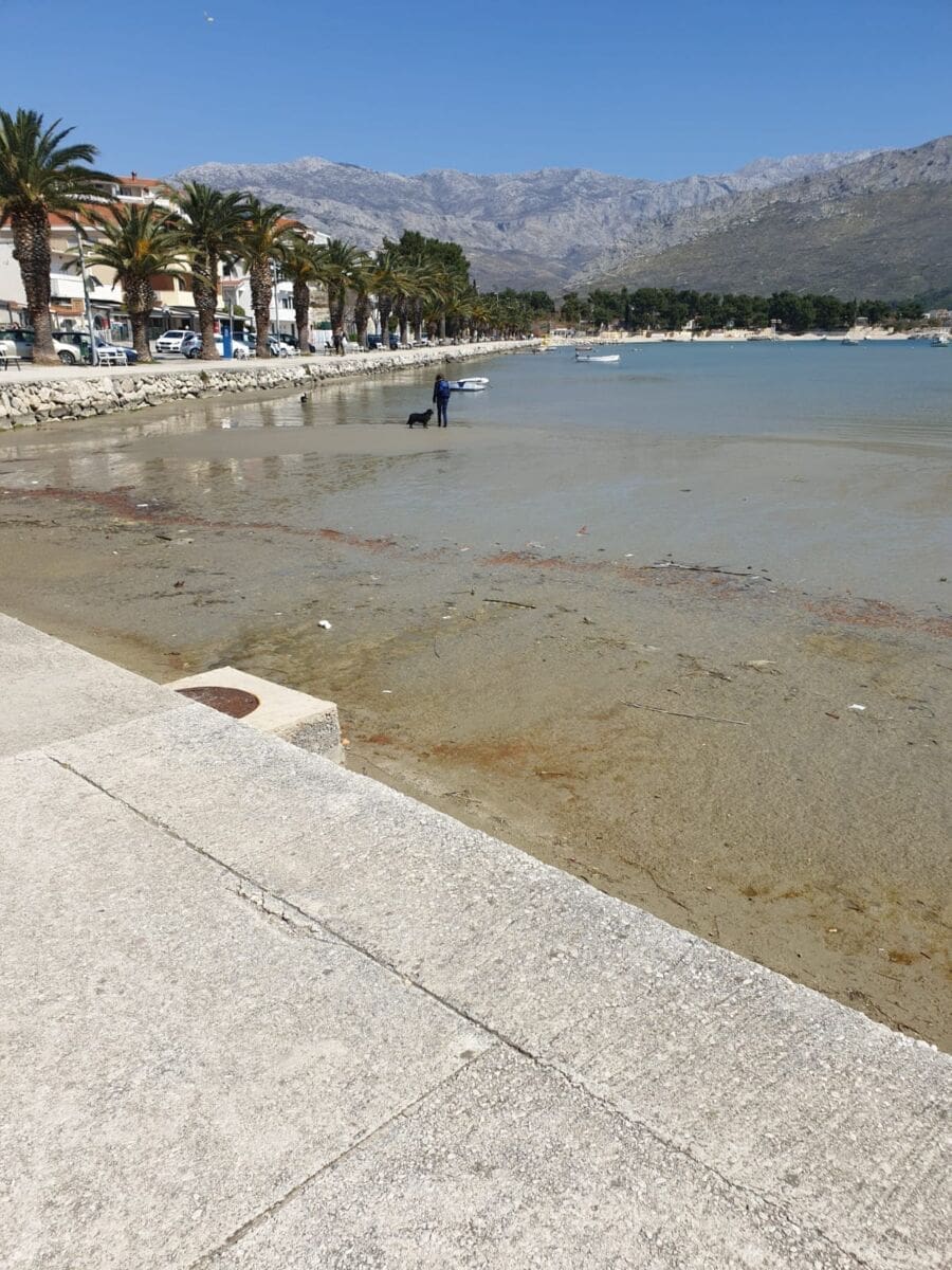 Tako je bilo i jučer i danas. Kontejner pun raznog otpada gurnut je u more, odnosno plićak koji se za vrijeme oseke pretvori u salbun. Smeće se brzo proširilo po cijeloj vali.