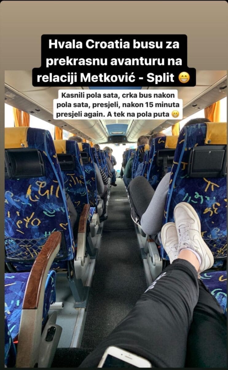 - Čekali smo bus i mehaničare iz Međugorja te su nas ukrcali u bus na kojem piše "Nk Croatia Zmijavci". Na izlazu za Zagvozd, gdje inače presjedaju putnici koji idu u Imotski, opet su nas izbacili sve u novi bus. Sada smo u Dugopolju. Sad će ovi iz Vrgorca popraviti to i čekati ljude koji idu Zagreb, dok nas iskrcaju u Splitu, jada nam se ova čitateljica.