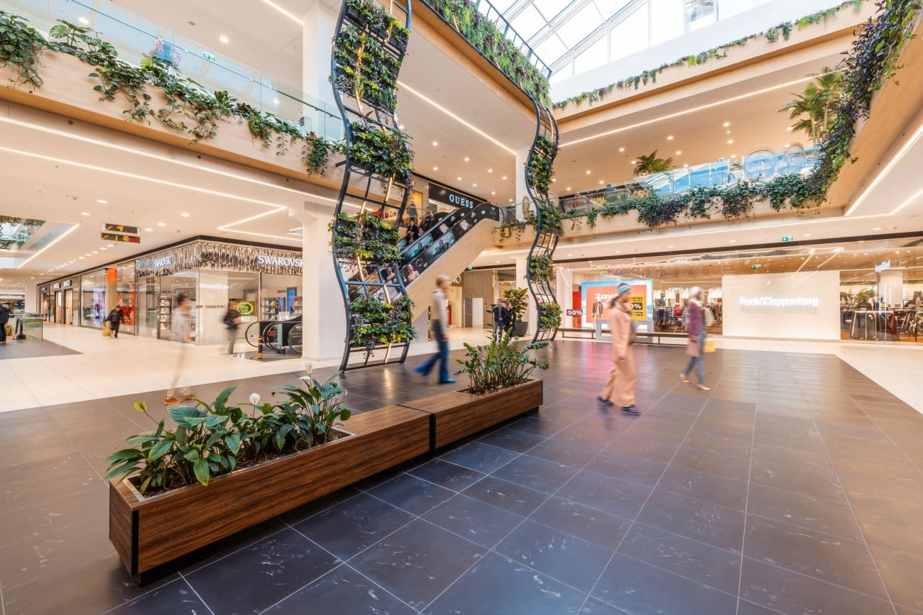 A što se promijenilo u odnosu na ranije? Kombinacija drva i metala osuvremenila je unutarnji prostor, a za dašak svježine pobrinulo se gotovo 1.000 biljaka raspoređenih u pročelja galerija, veliki zeleni zid i samostojeće posude za cvijeće oko samog centra. Ukupno 13 tona čelika i 2 kilometra staklenih lamela oplemenilo je ulazne mostove koji povezuju garažu i Centar, a cjelokupno zdanje osvijetljeno je led rasvjetom. Obojano je 70.000 kvadrata zidova te osvježeno 11.000 kvadrata hodnika trgovačkog centra. Radovi su obuhvatili i prodajne prostore – čak 16.000 metara kvadratnih, zbog čega je više od 40 zakupnika promijenilo, preuredilo ili preselilo svoje lokale unutar centra kako bi se ponuda što bolje grupirala prema dobrima i uslugama.