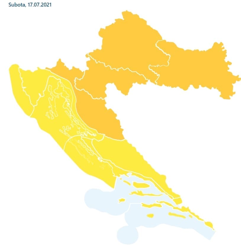 Za cijelu Dalmaciju izdano je i upozorenje na obilniju kišu (20 do 40 litara), a naglašava se i mogućnost za izraženije pljuskove s grmljavinom.