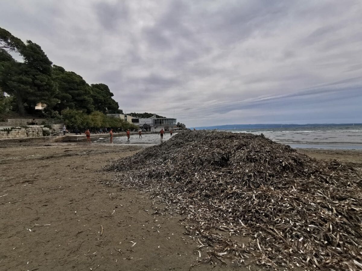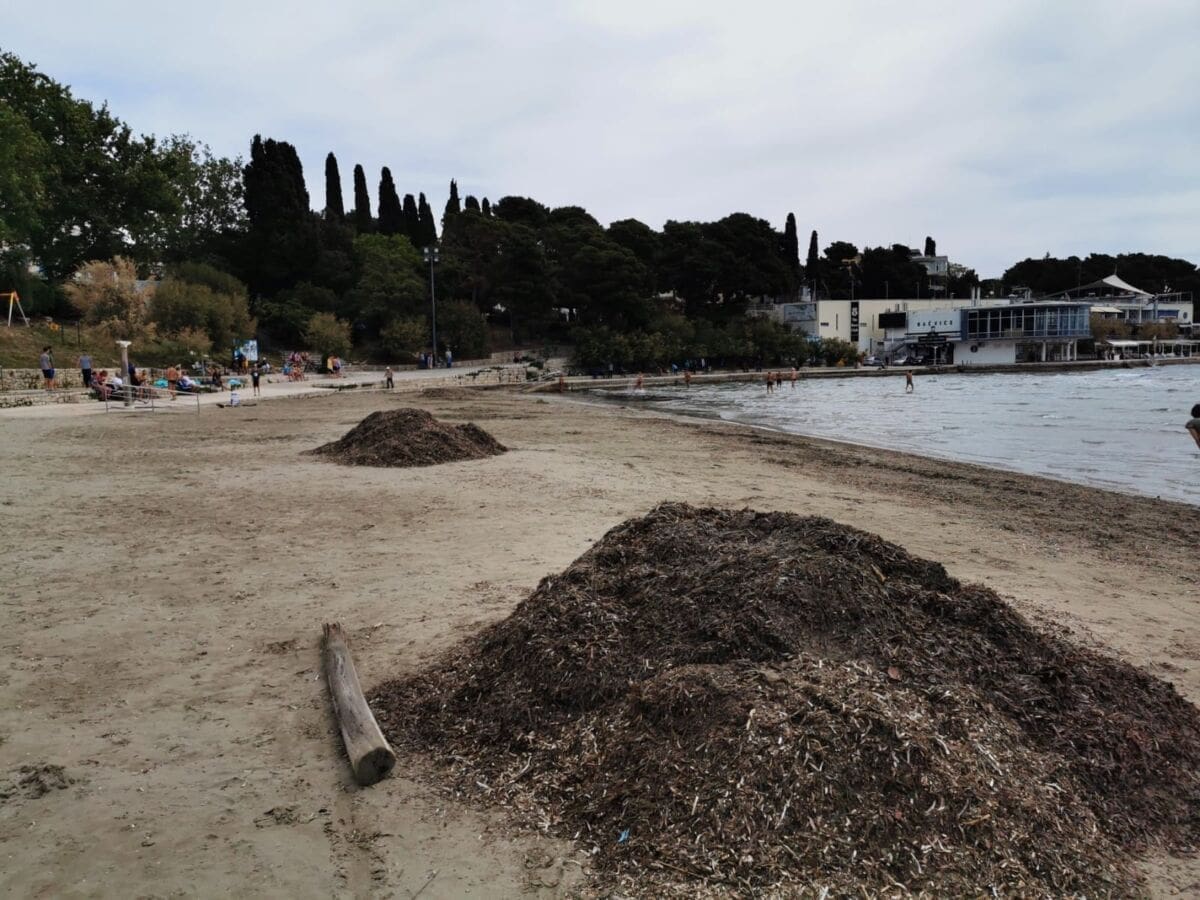 Članovi Ekološkog društva Picigin Bačvice iskoristili su vikend za čišćenje nakupljenje lažine na plaži Bačvice.
