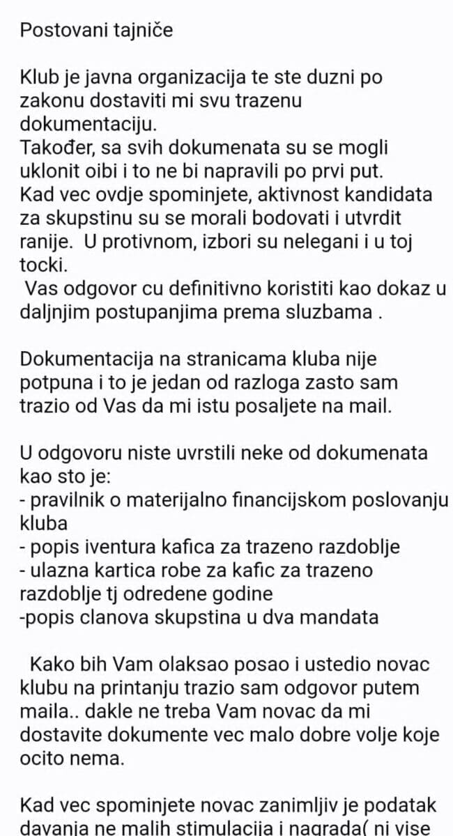 – Na stranicama kluba su u trenutku provođenja izbora bili nevažeći Statut star dvije godine i samo jedan manji dio važnih klupskih pravilnika.